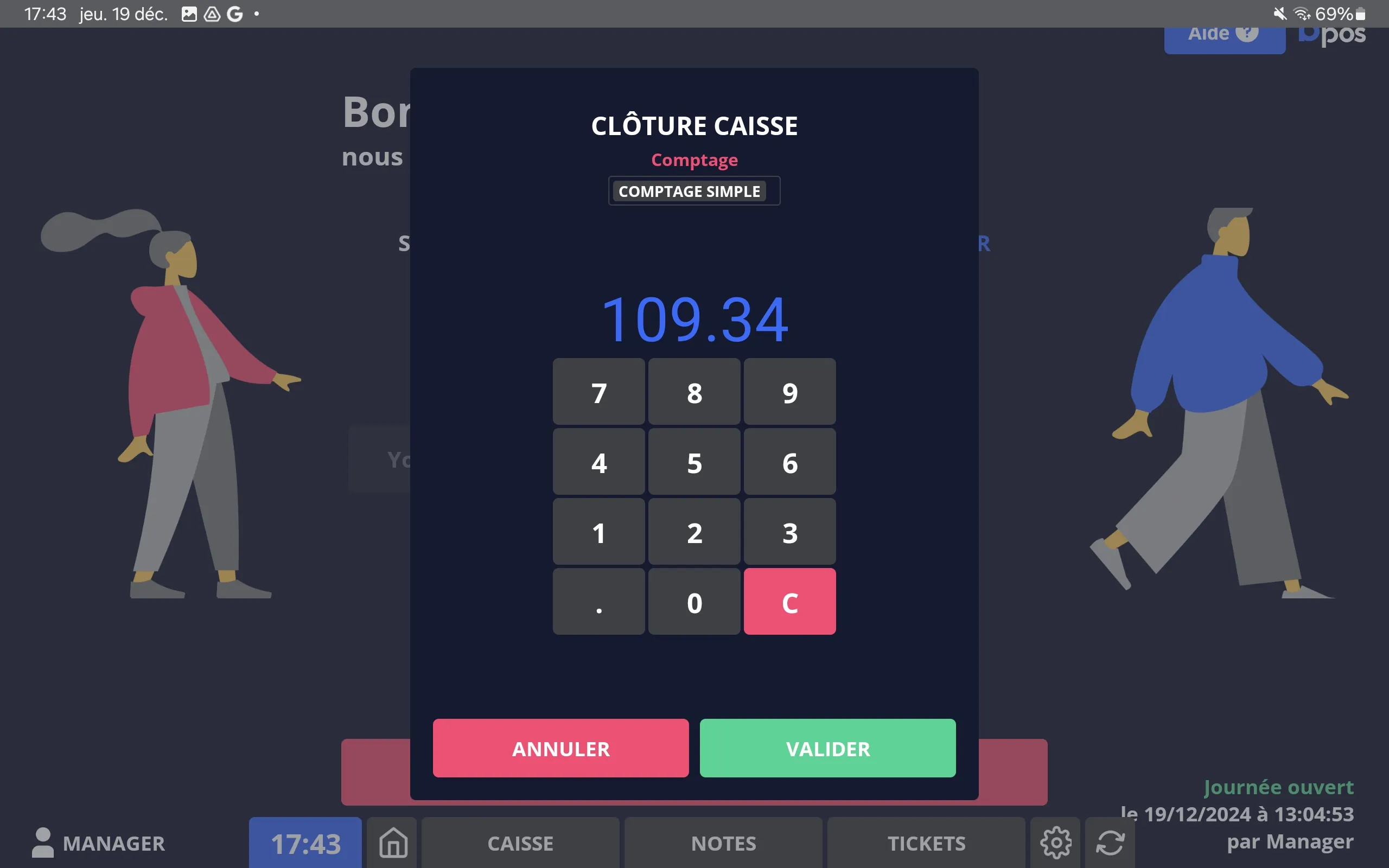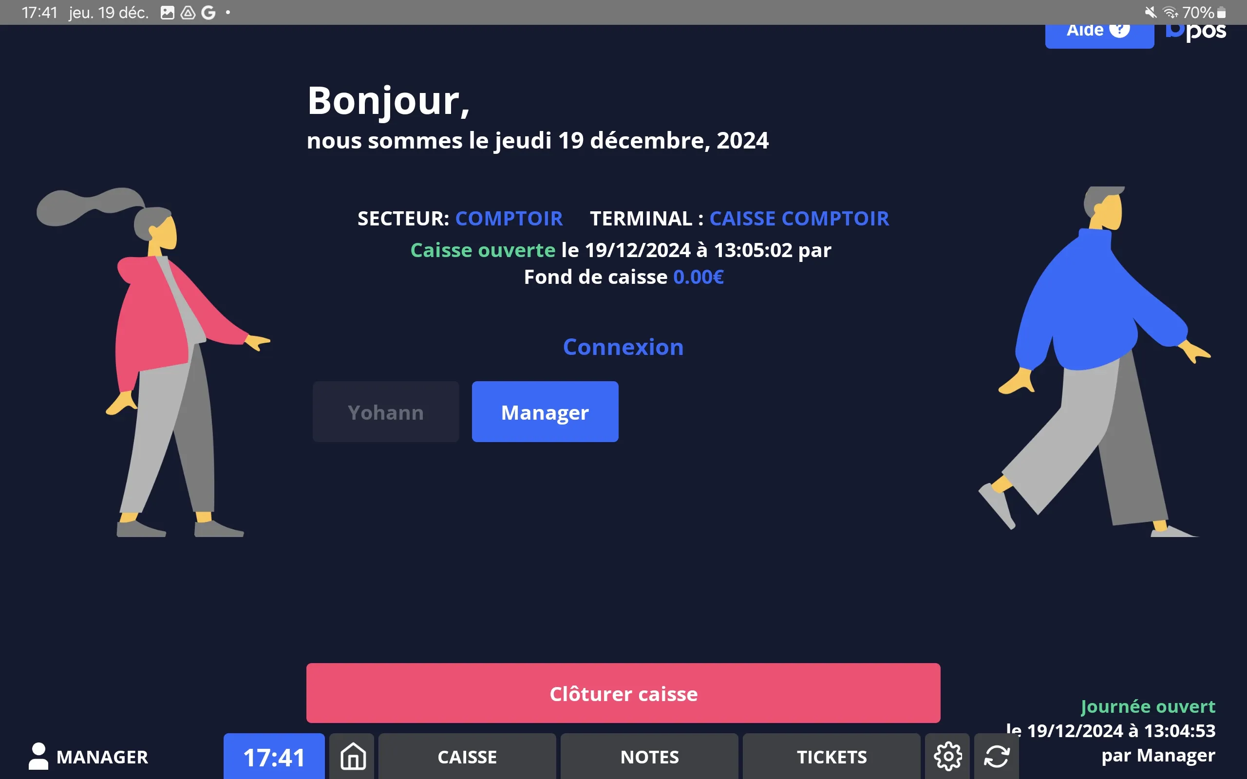 ⚠️ Seul un profil manager peut ouvrir ou fermer la caisse.